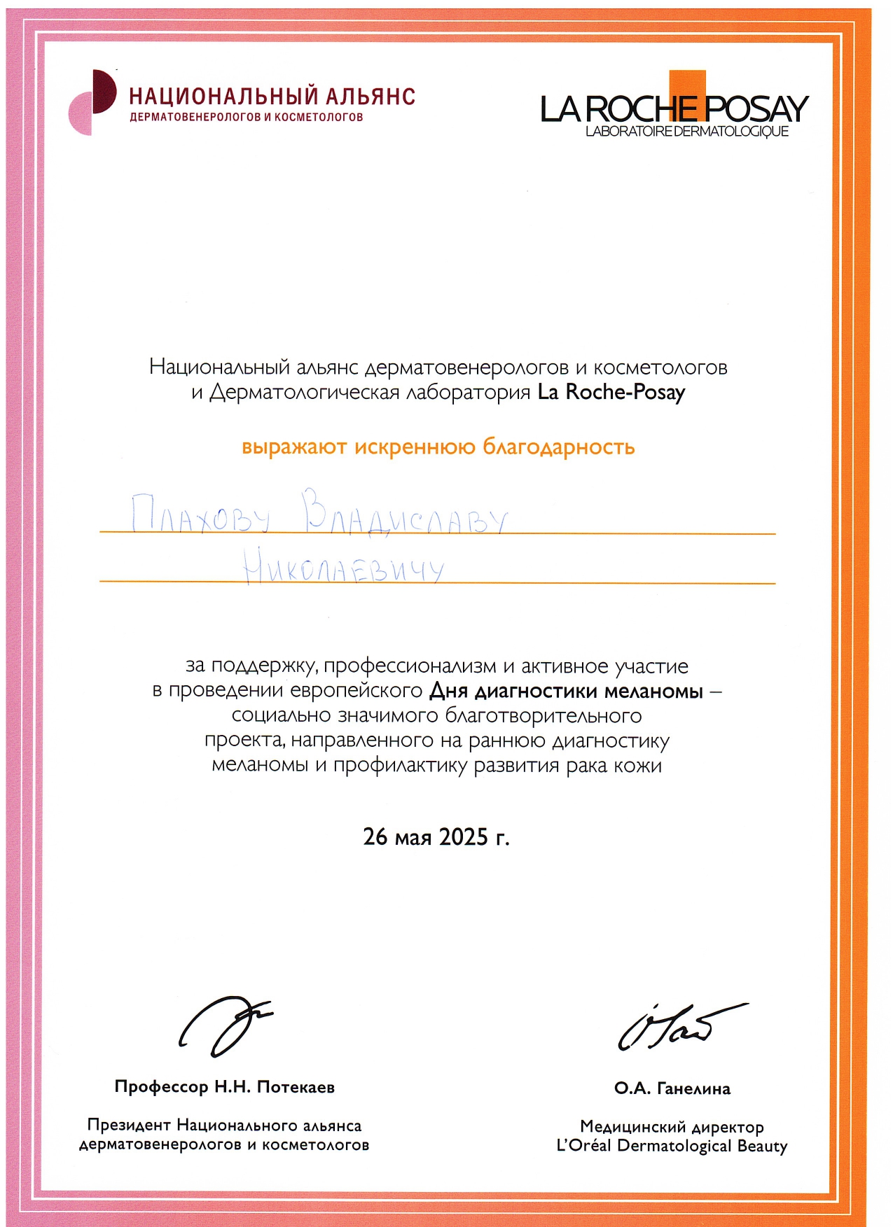- Диплом по специальности "Лечебное дело", Учреждение образования «Витебский государственный ордена Дружбы народов медицинский университет» (2012г.)